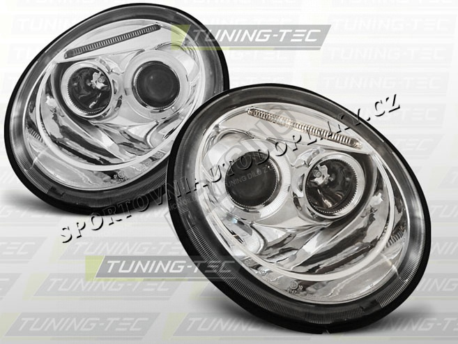 VW NEW BEETLE 1998-05 PŘEDNÍ ČÍRÁ SVĚTLA ANGEL EYES CHROME (LPVW75) - cena za pár 2 ks, tyto světla