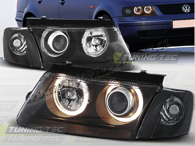 VW PASSAT B5 (3B) 1996-00 PŘEDNÍ ČÍRÁ SVĚTLA ANGEL EYES BLACK