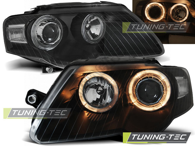 VW Passat B6 3C 03.2005-10 přední čirá světla angel eyes black