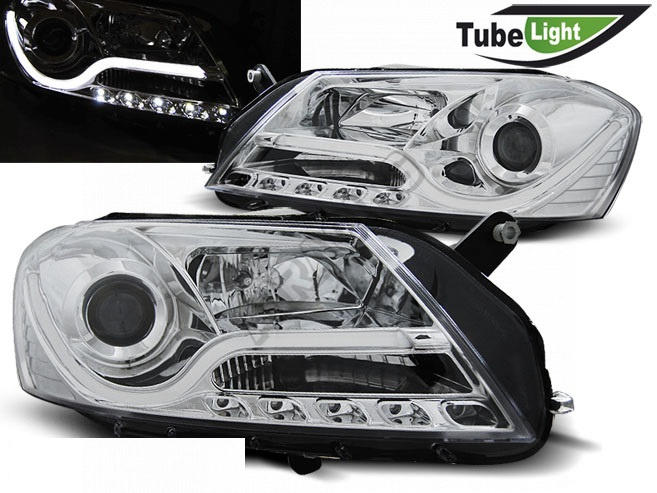 VW Passat B7 10.10-10.14 přední čirá světla LED Tube Light chrome (LPVWI2)