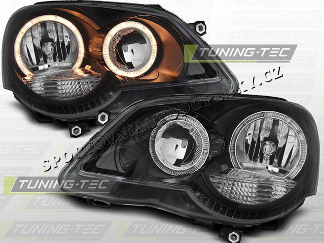 VW POLO 9N3 2005- PŘEDNÍ ČÍRÁ SVĚTLA ANGEL EYES BLACK