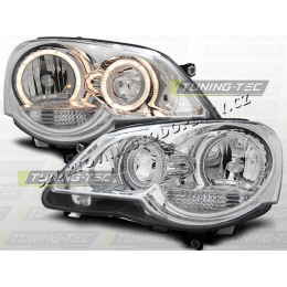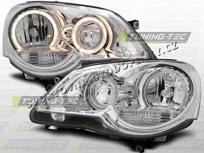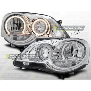VW POLO 9N3 2005- PŘEDNÍ ČÍRÁ SVĚTLA ANGEL EYES CHROME