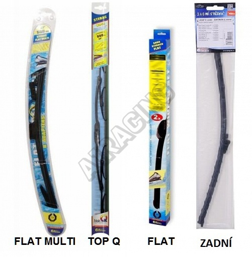 Stěrače FLAT SET (sada 2 ks na celé auto). Vysoce kvalitní pružný člen plochého stěrače zajišťuje stejnoměrný tlak grafitového břitu v celé jeho délce, což zamezuje rozmazávání nečistot a vytváření pruhů.