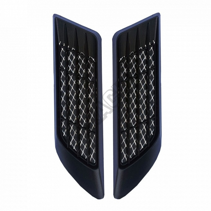 Deflektor na karoserii vozu.Vyrobeno z ABS. Sportovní design Vašeho vozu.Připevnění pomocí samolepící pásky 3M. Rozměry: 50x190mm Komplet 2 kusy.
