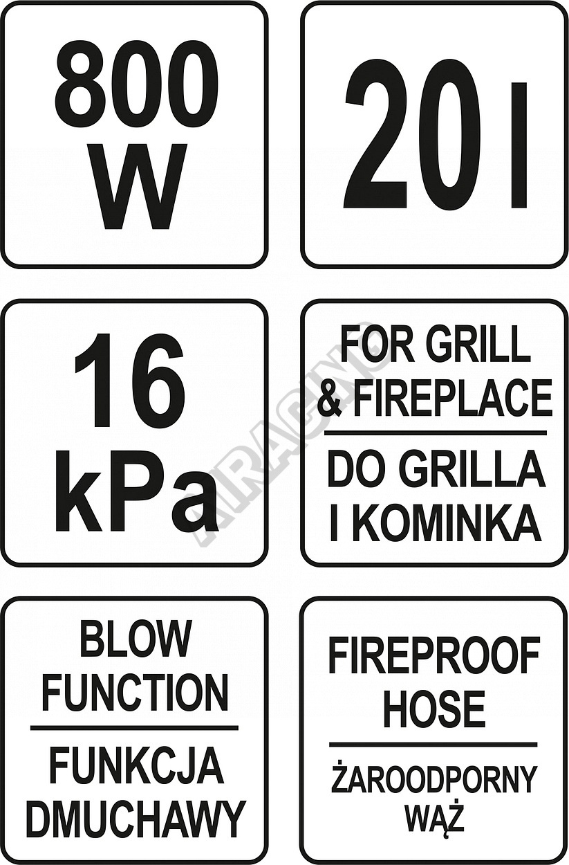 Sací hadice je tepelně odolná a je zakončena hliníkovou sací hubicí. Nádoba na popel je vyrobena z nerez oceli a její objem činí 20 litrů.