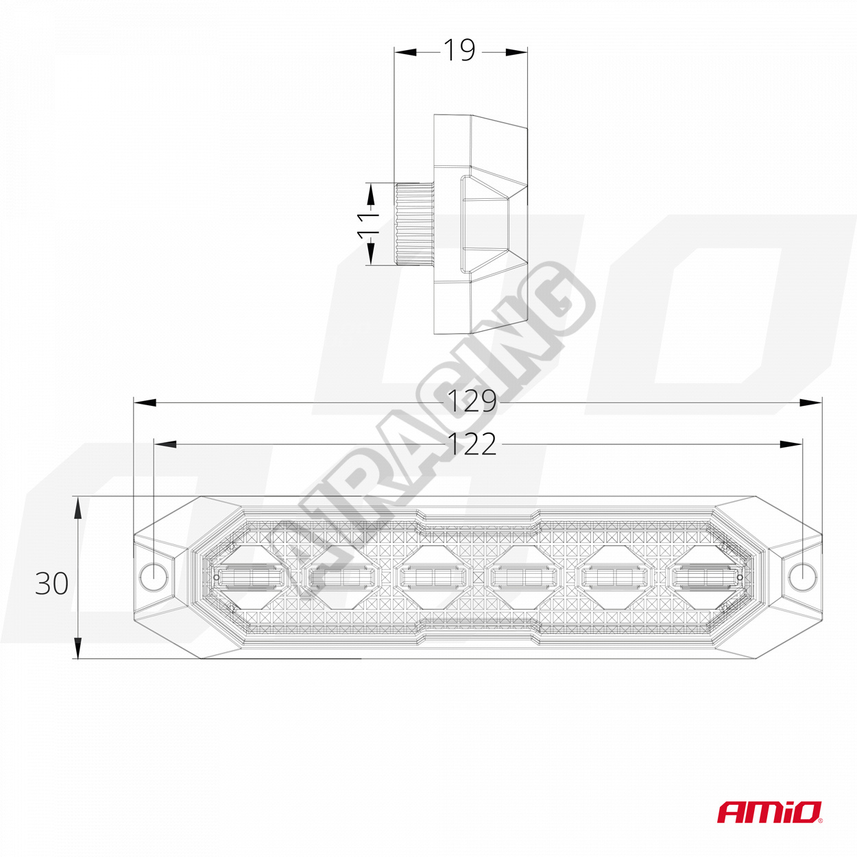 Výstražné ploché blikající světlo 6x3W LED R65 R10 12V 24V