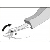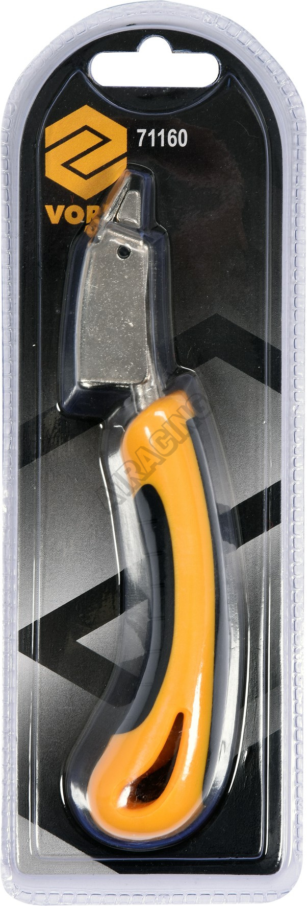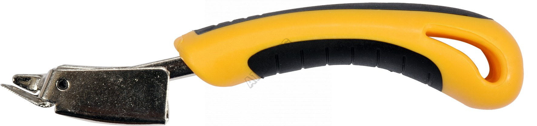 Vytahovač sponek je vyroben z kovu a má ergonomickou dvoukomponentní rukojeť.