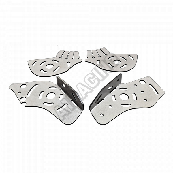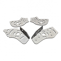 Usztywnienia tylnych mocowań posiadają po 4 dodatkowe listki blachy do “zaklepania” na półokrągłej stronie oryginalnego przetłoczenia w podłodze. Listki po zaklepaniu idealnie pasują do półokrągłej płaszczyzny przetłoczenia. Ich wyjątkowy kształt tworzy przerwy między listkami, które pozwalają dokładnie zespawać usztywnienia z podłogą.
