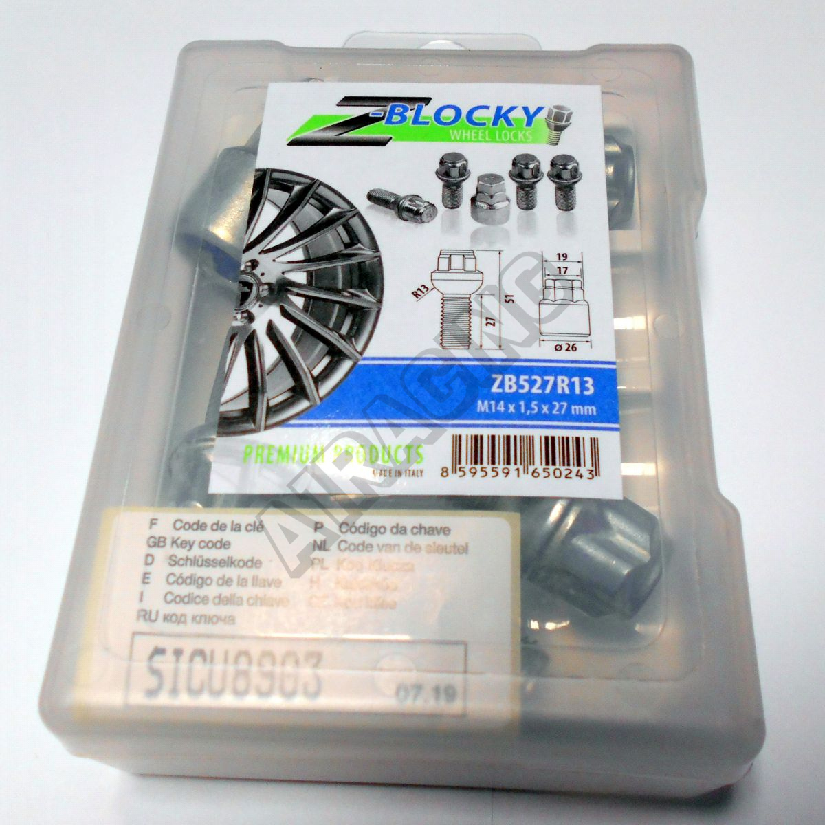 Z-BLOCKY pojistné šrouby pro vozy ŠKODA a koncernové vozy VW GROUP M14x1,5 / 27 mm s uchycením do koule