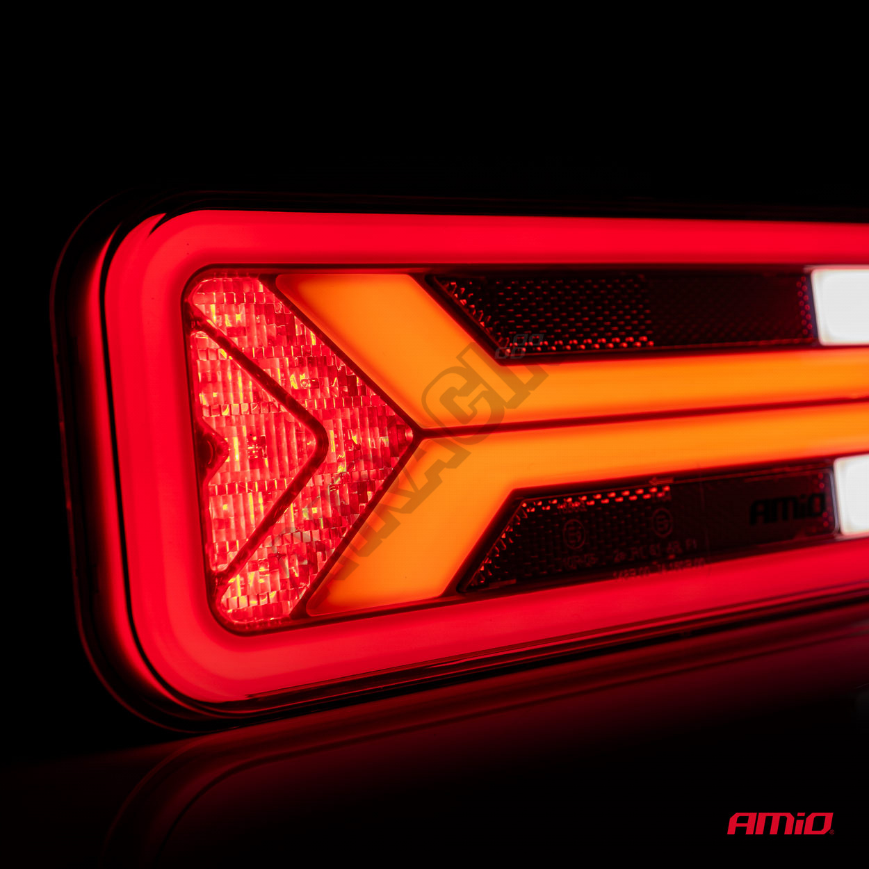 Dynamický směrový ukazatel je efekt putujícího světla směru jízdy, ve kterém se každá z diod rozsvěcuje s mírným zpožděním. Lampa může pracovat v instalacích 12V i 24V, má homologaci elektromagnetické kompatibility a stupeň ochrany IP 67. Pravděpodobně je to nejhezčí lampa na trhu.