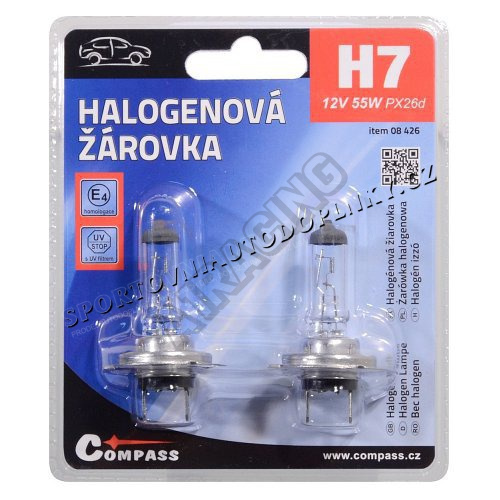 Žárovka 12V H7 55W PX26d halogenová blister 2ks Halogenová autožárovka 12V, homologace E. Sklo žáro