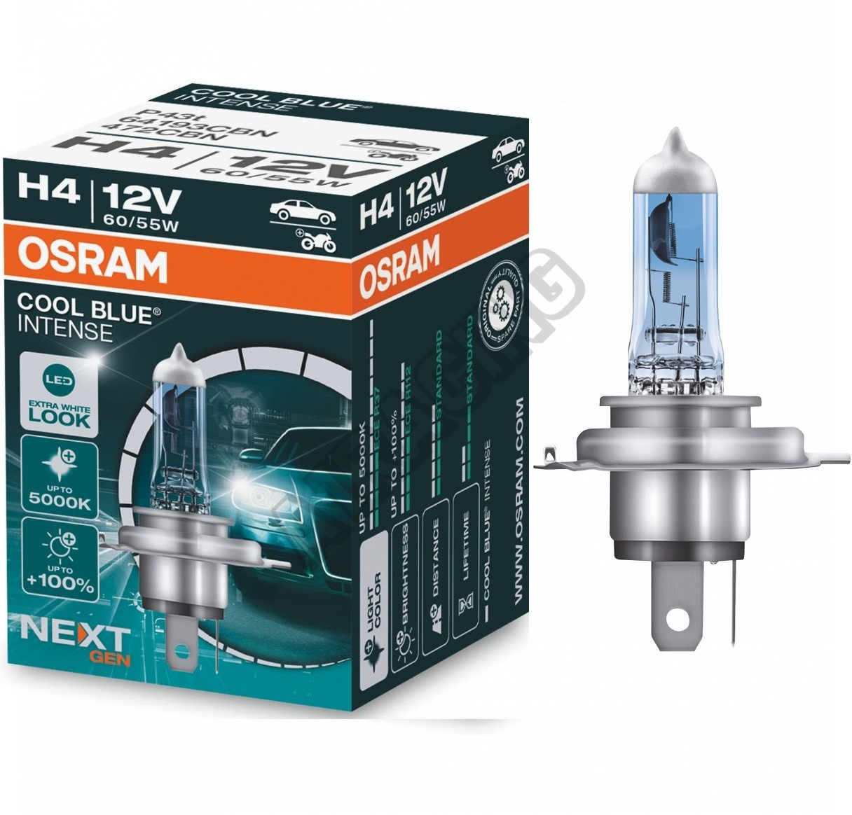 Žárovka Osram H4 12V 60/55W P43t Cool Blue Intense Next Generation 5000K +100% 1 ks