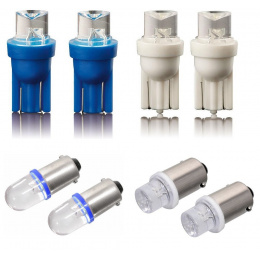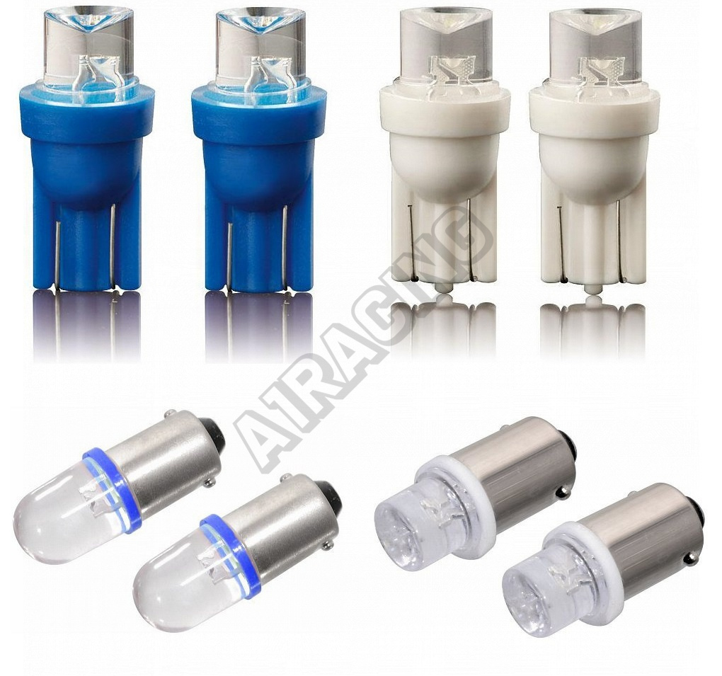 Žárovky parkovací 1 LED T10 2 ks - kruhová kovová paticE BA9s je většinou pro starší auta, úzká za
