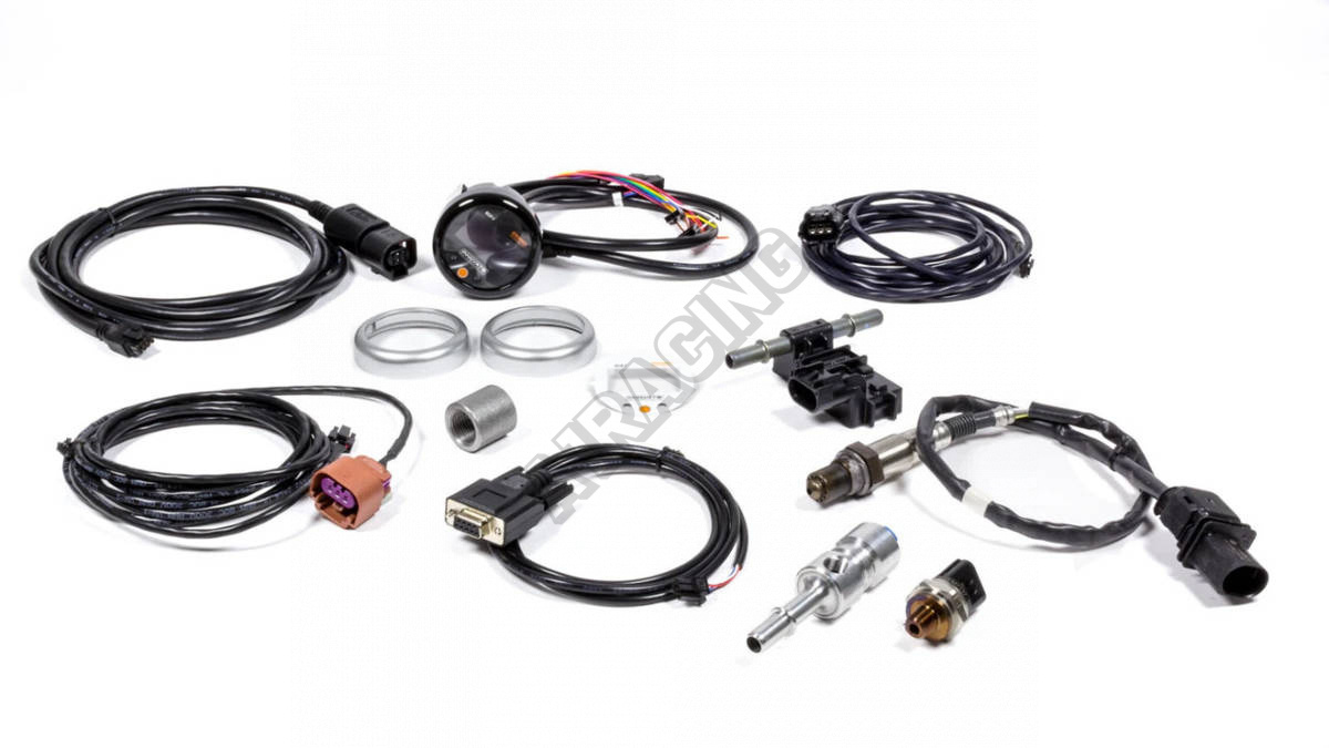 ECF-1 zawiera: czujnik etanolu, czujnik ciśnienia paliwa, przewód paliwowy (3/8 "M do 3/8" F w / 1/8 "NPT, boczny port, czujnik O2, i Korek