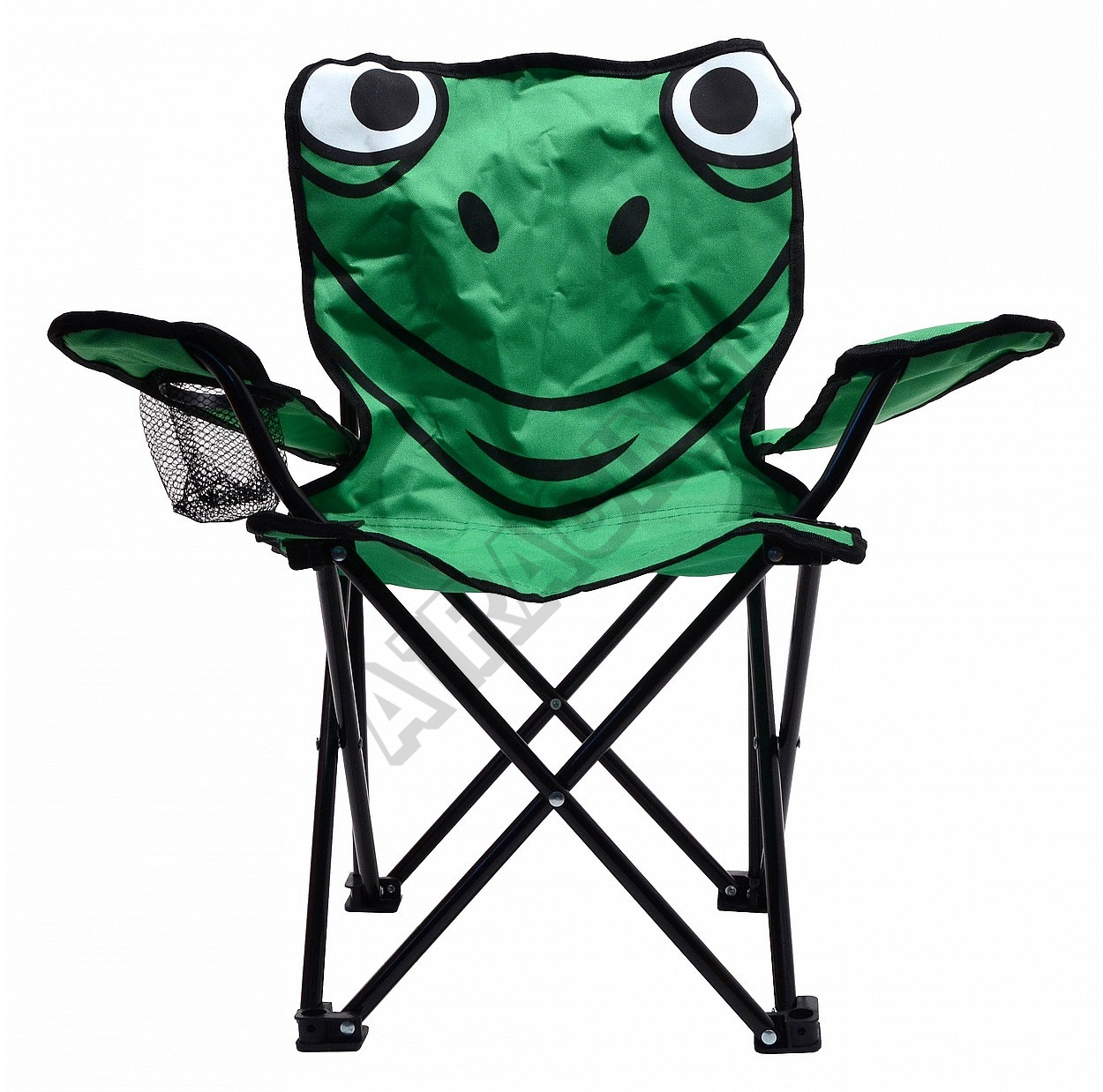 Kempingová židle Frog je skládací židle s dětským motivem a tvarem žáby.