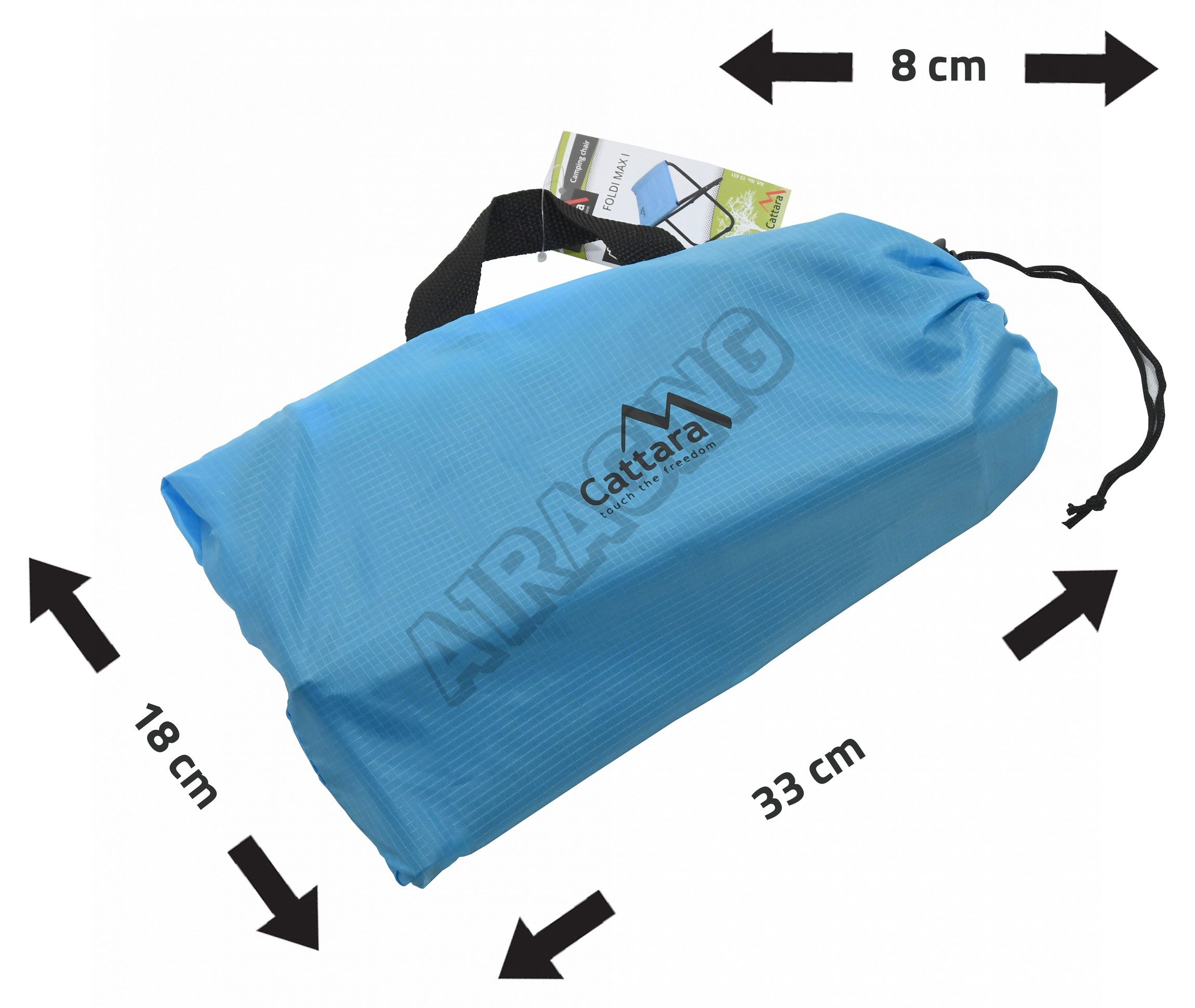 Židle je lehce přenosná díky svým malým rozměrům 33 x 18 x 8 cm ve složeném stavu.