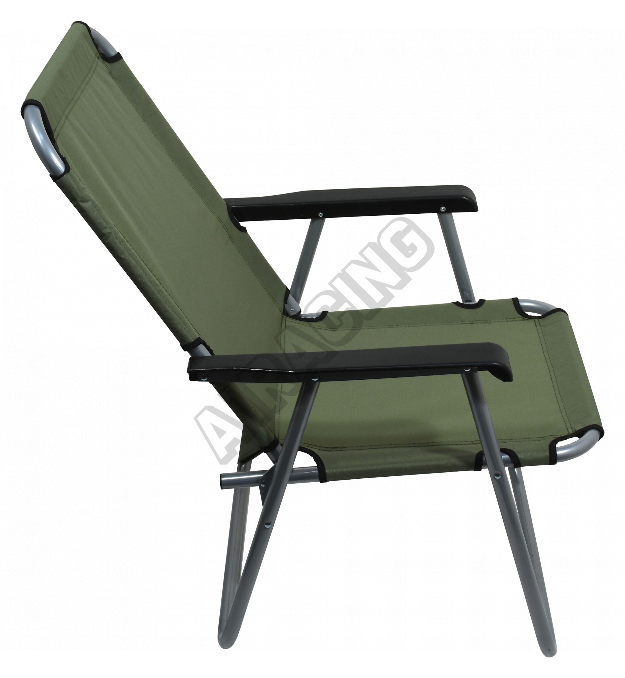 Židle je lehce a rychle složitelná a je vybavená dvěmi opěrnými nohami, které se rozkládají klasicky tahem od sebe.