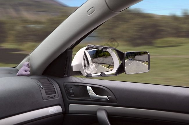 Přídavné boční zrcátko s nastavitelným úhlem do všech stran. Vhodné téměř pro všechny typy vozidel, připevňuje se na stávající boční zpětné zrcátko. Díky gumovým upínačům zrcátko nevibruje. Lze použít pro levou i pro pravou stranu. Ideální pomocník pro jízdu s přívěsem či karavanem. Neomezuje funkci stávajícího zrcátka. Plocha zrcátka 11 x 14 cm, homologace E4.