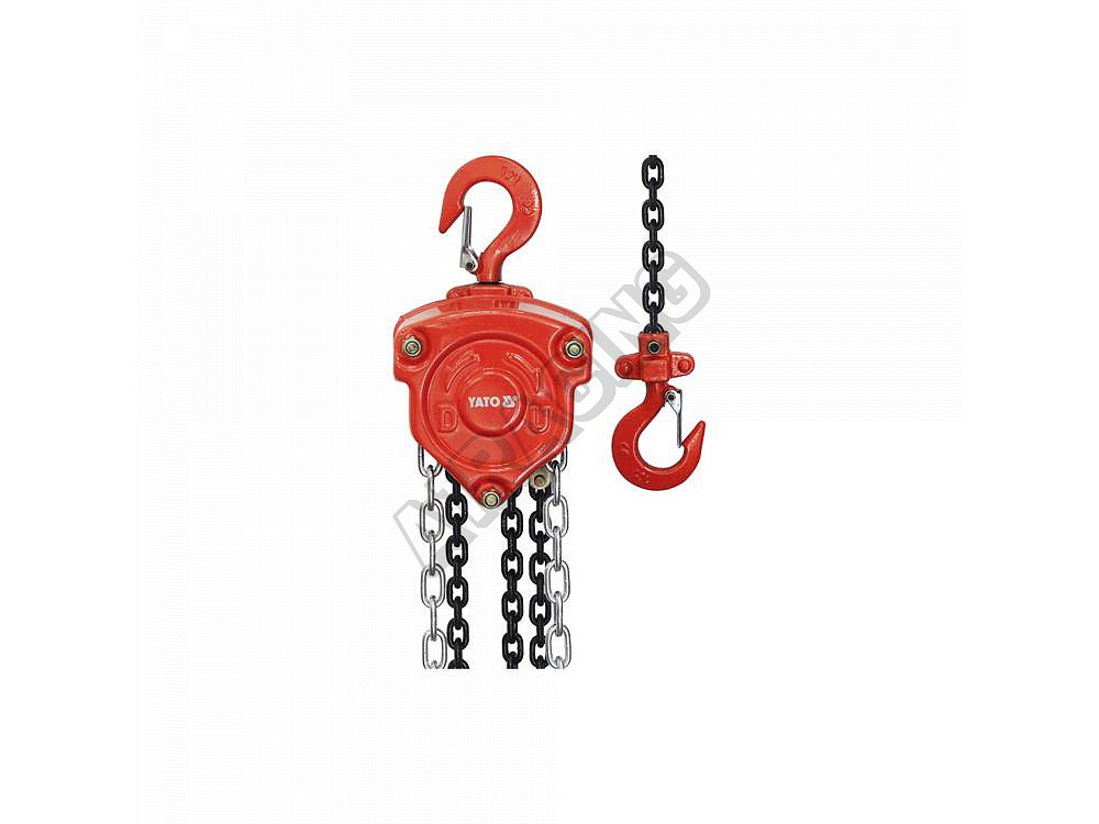 Řetěz a hák byl speciálně navržen pro výrazné zlepšení odolnosti a bezpečnosti. Ovládací řetěz má délku 3 m a výška zdvihu je 3,5 m. Maximální zatížení 3T.